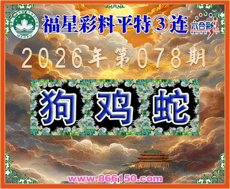 078期:『福星彩料』 📙平特③连📙【狗鸡蛇】开:狗33,鸡46,蛇02