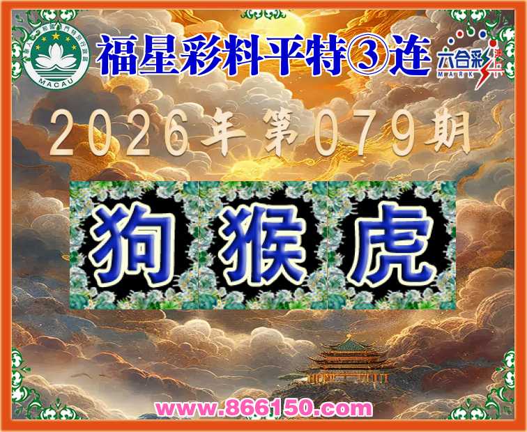 079期:『福星彩料』 📙平特③连📙【狗猴虎】开:猴35
