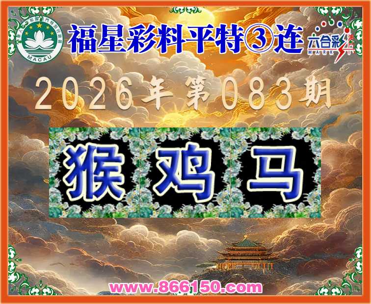 083期:『福星彩料』 📙平特③连📙【猴鸡马】开:猴23,鸡46,马01