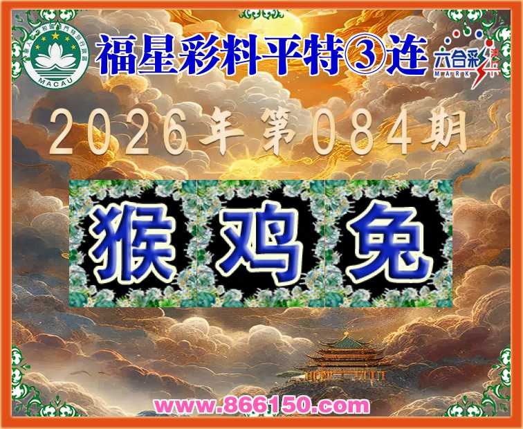084期:『福星彩料』 📙平特③连📙【猴鸡兔】开:兔16