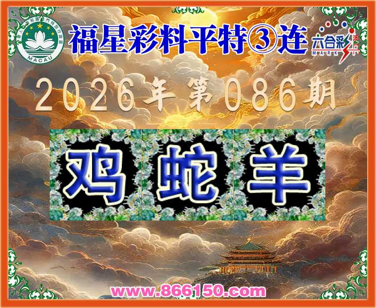 086期:『福星彩料』 📙平特③连📙【鸡蛇羊】开:鸡34,蛇14,羊12
