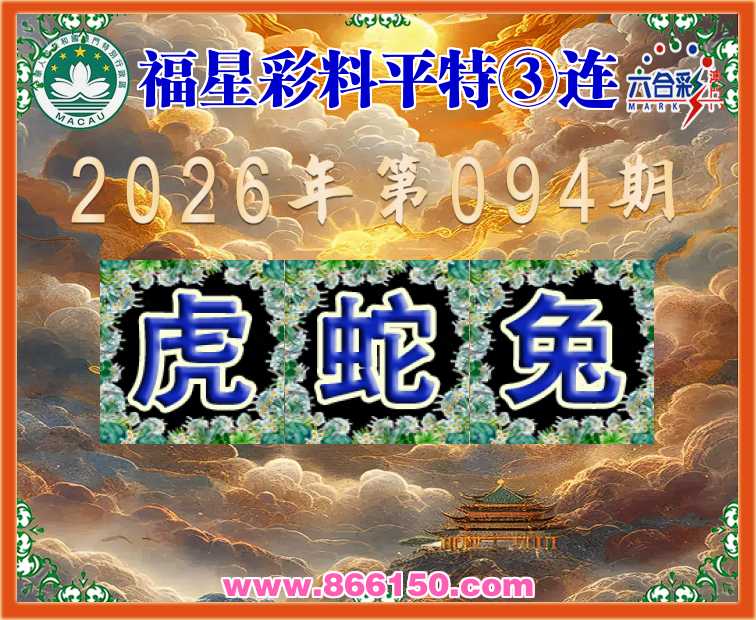 094期:『福星彩料』 📙平特③连📙【虎蛇兔】开:虎17,蛇38,兔16