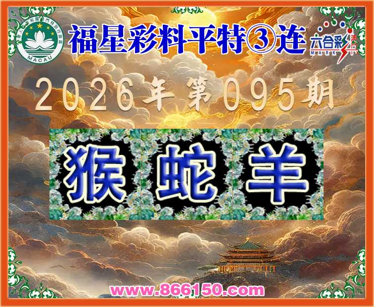 095期:『福星彩料』 📙平特③连📙【猴蛇羊】开:猴35,蛇38,羊48