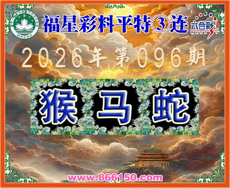 096期:『福星彩料』 📙平特③连📙【猴马蛇】开:猴35,马37,蛇26