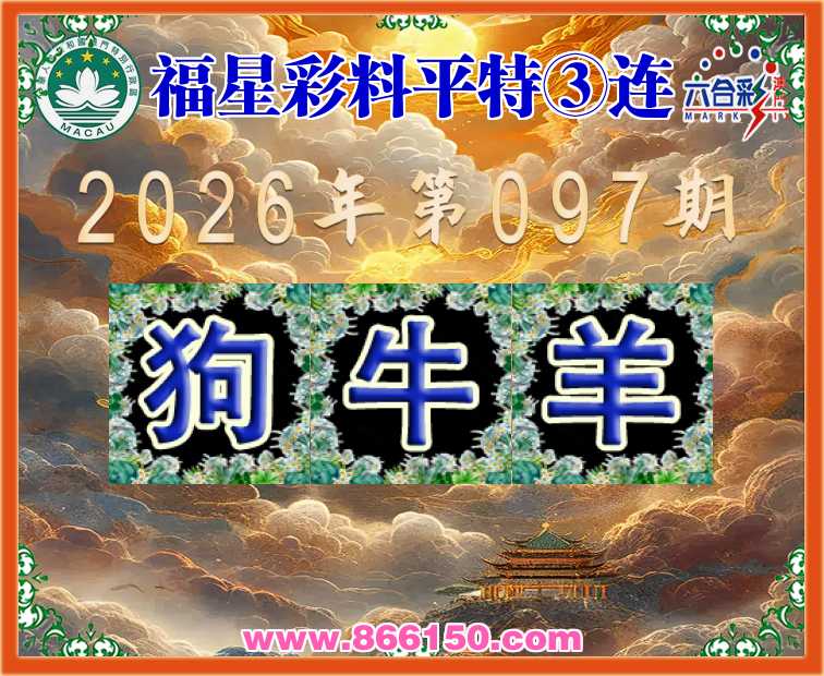 097期:『福星彩料』 📙平特③连📙【狗牛羊】开:猴11