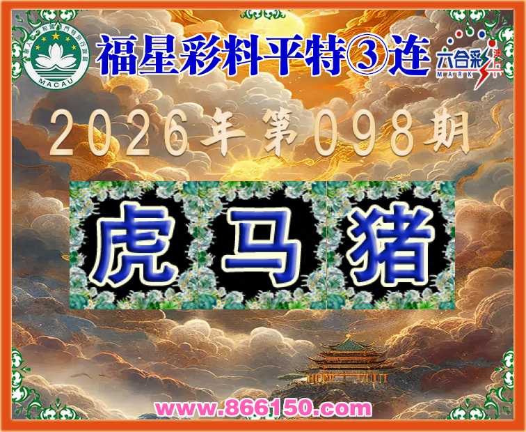 098期:『福星彩料』 📙平特③连📙【虎马猪】开:虎17,马49,猪08