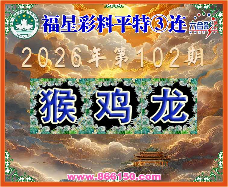 102期:『福星彩料』 📙平特③连📙【猴鸡龙】开:猴47,鸡46,龙03