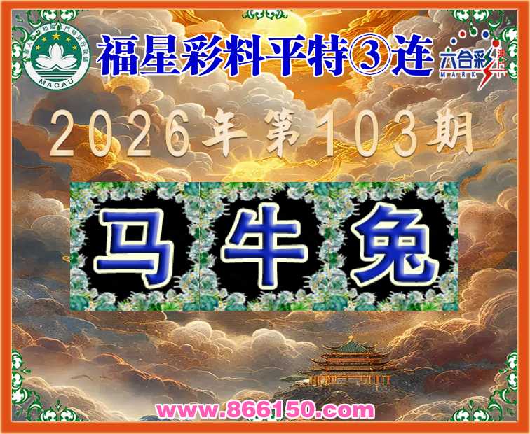 103期:『福星彩料』 📙平特③连📙【马牛兔】开:马01,牛06,兔04