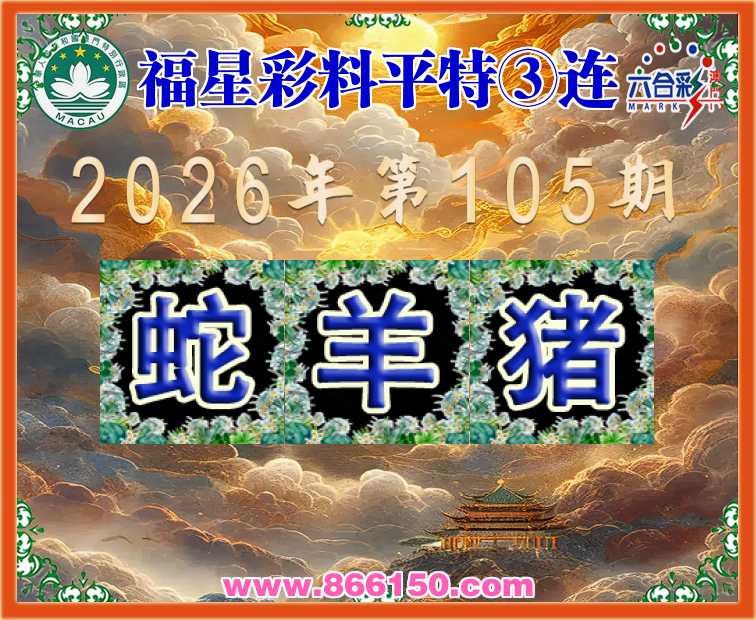 105期:『福星彩料』 📙平特③连📙【蛇羊猪】开:兔28